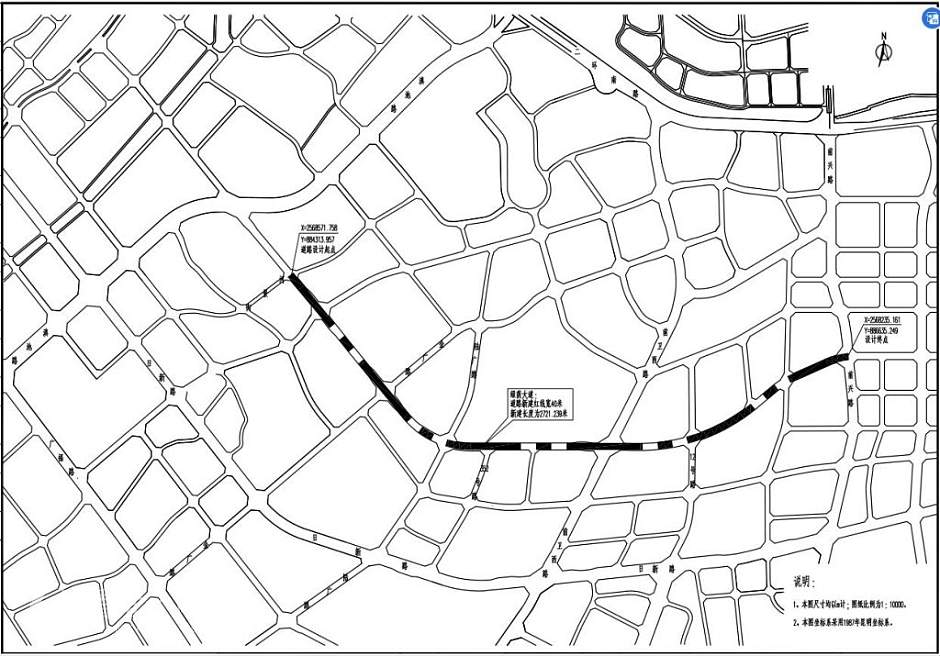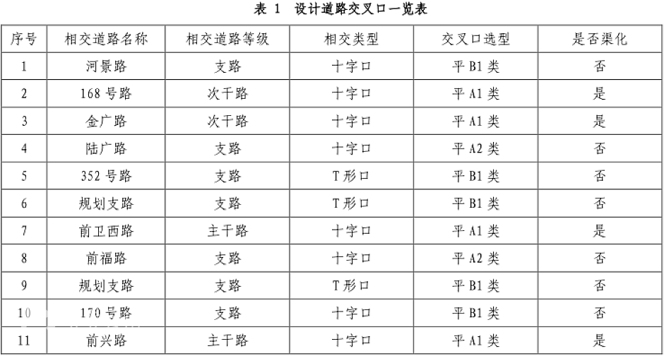 根据项目施工图设计内容显示,其设计道路与11条道路相交,包括2条主干路、2条次干路、7条支路。