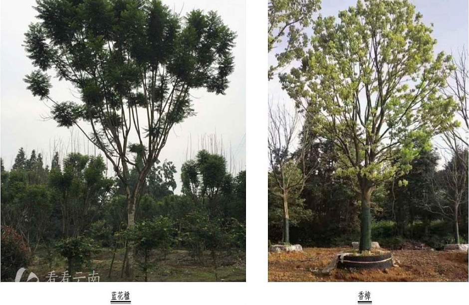 值得注意的是,西山区绿荫大道新建工程项目施工图设计还显示,项目行道树将选用香樟(胸径15至16cm),间隔8米种植;侧分带乔木将选用蓝花楹(胸径15至16cm),间隔8米种植在绿化带中间位置。也就是说,该项目临近机动车道的绿化带将以种植蓝花楹为主。
