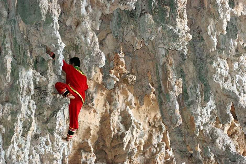 云南建水燕子洞被称为“亚洲第一溶洞”,燕子洞的洞口有50多米高、穹顶是溶洞常见的钟乳石群,在这些石群上悬挂着数块牌匾,被人们称为“钟乳悬匾”,是建水燕子洞的一道奇观。洞口那么高,牌匾是怎么挂上去的呢?原来,这都是采燕窝的攀爬高手挂上去的。