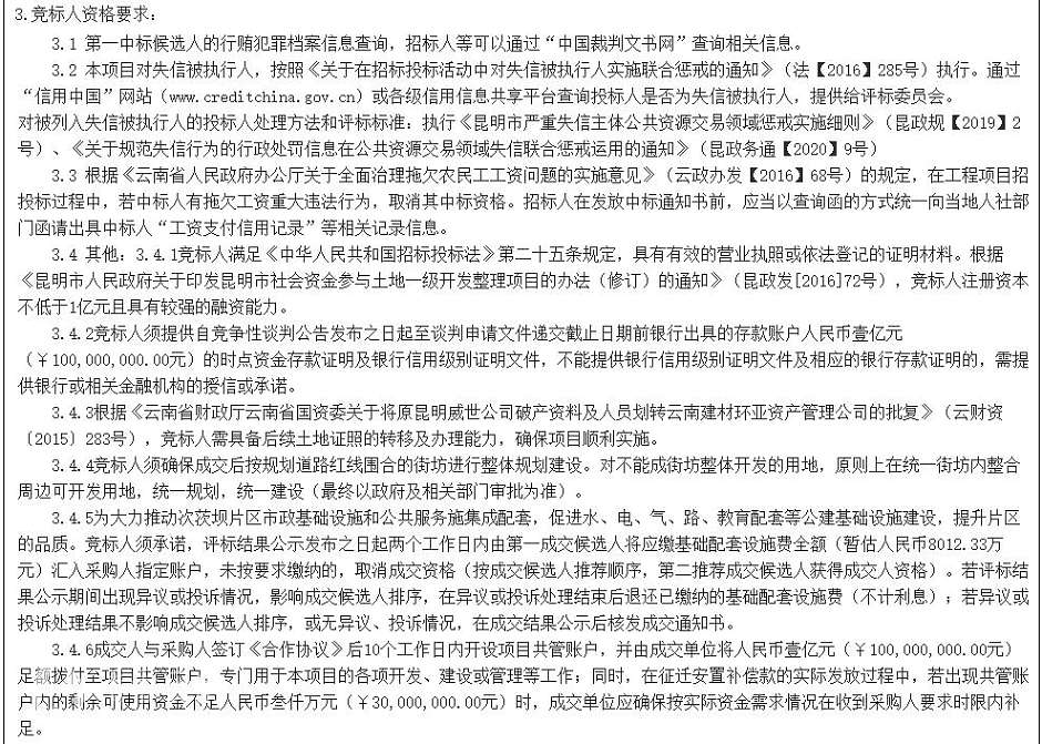 - 竞标人注册资本不低于1亿元且具有较强的融资能力。