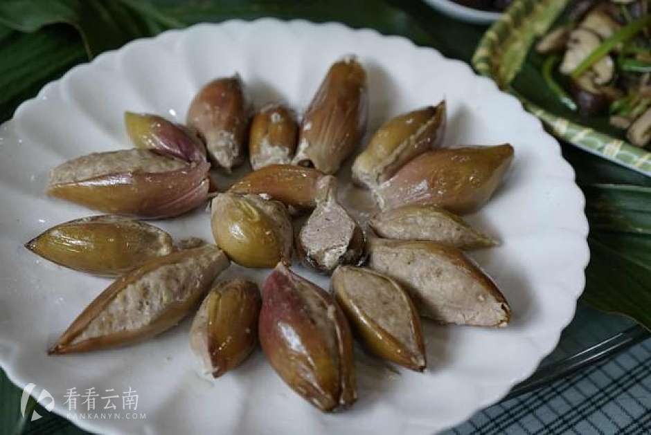 傈僳族的智慧体现得淋漓尽致,草果的花、茎、叶、芽、果,被精心制成草果叶汁烤乳猪、草果花凉拌、草果汁煮鸡、草果花包饭、草果花酒等十多道包含草果元素的菜品。