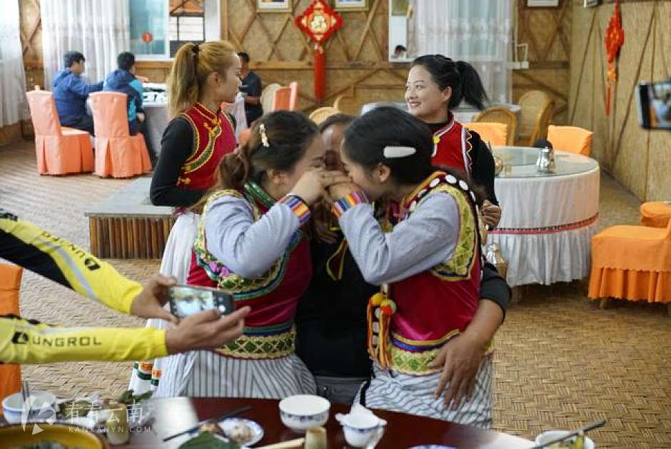 席间穿着盛装的傈僳族姑娘们,端起小酒杯来到副领队面前……悠扬盛情的酒歌再次响起,副领队和两位热情的姑娘一饮而尽,现场欢声笑语不断,让远道而来的朋友体验到不一样傈僳风情,从视觉、味觉、感觉、文化氛围……来一次切身体验和感受。真正地让大家留下了一个难忘的美食之旅。