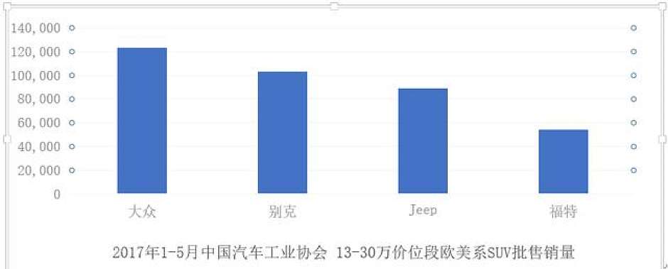 根据2017年1-5月中国汽车工业协会数据显示,在合资SUV竞争最激烈、新车上市最密集的13-30万价位段区间,广汽菲克国产Jeep家族销量位列欧美系前三。而2017上半年,Jeep国产车型销售106316台,同比增长106%。这意味着,尽管合资仅短短2年,事实上产品上市仅一年半,广汽菲克Jeep已和在市场中拼搏多年的老将大众、别克一起,成为主流合资SUV市场的欧美高端品牌第一阵营。