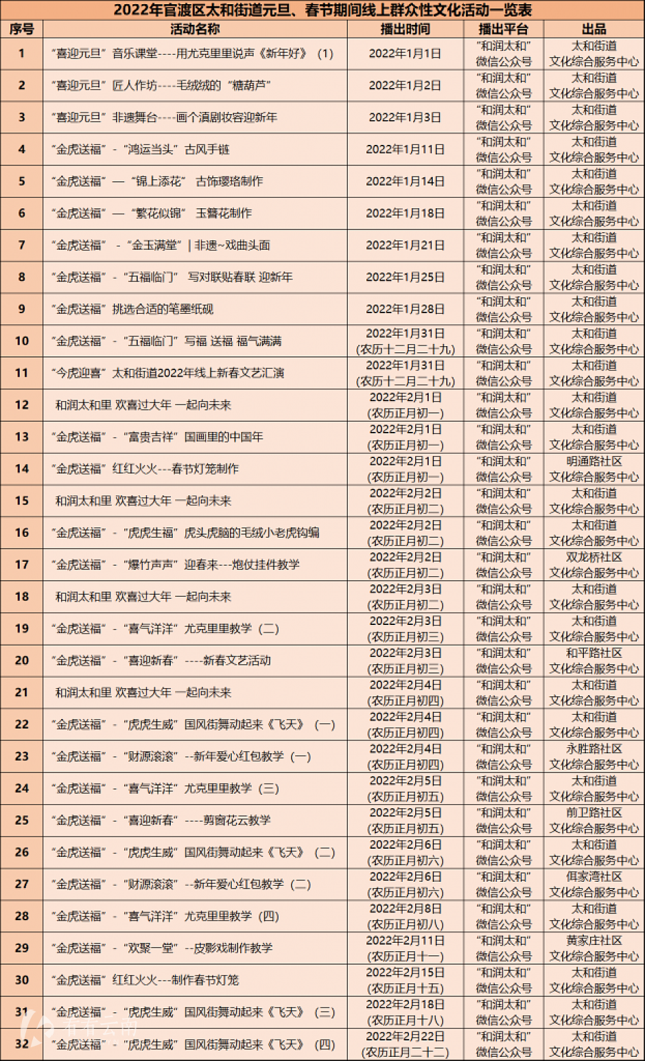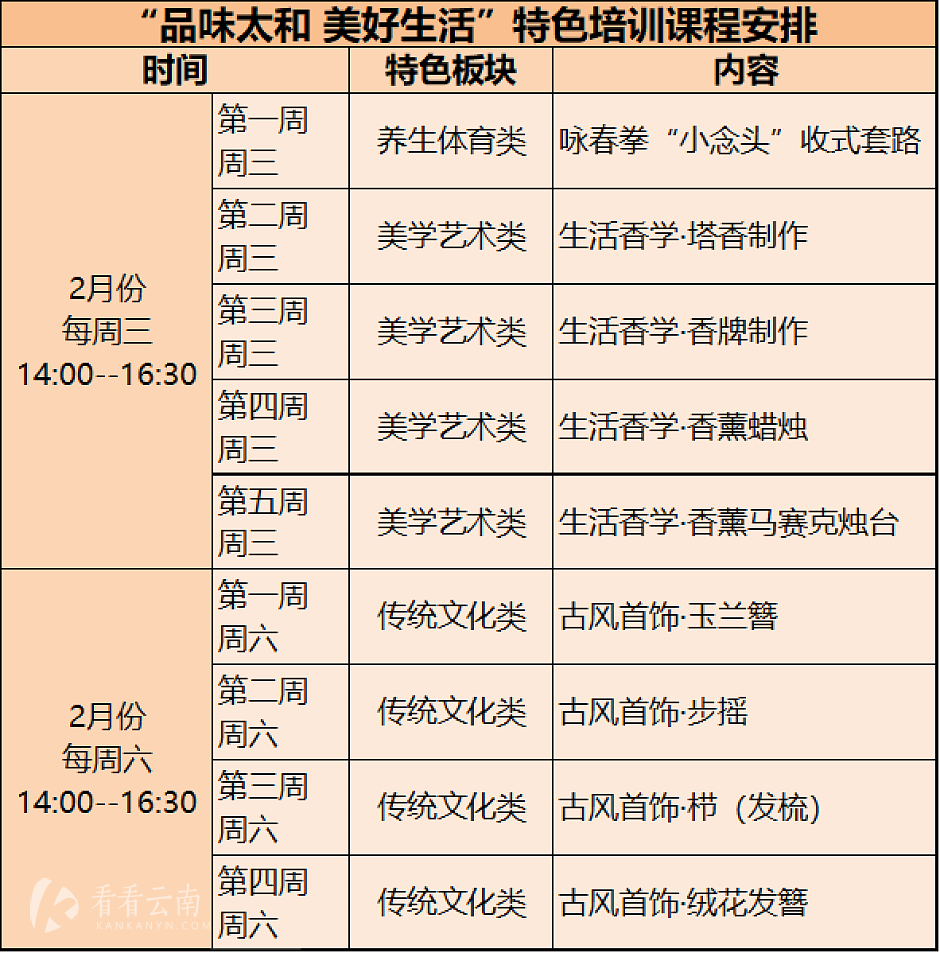 整个太和常驻人口约6.9万人。为了将这个人口相对密集的“大家庭”的生活尽可能地丰富起来,太和以综合文化服务中心为平台,以党建工作、手工制作、舞蹈瑜伽等活动为媒介,以贯穿四季的节日作为催化剂,为居住在太和的老昆明带来了主题鲜明的业余人文趣味生活。